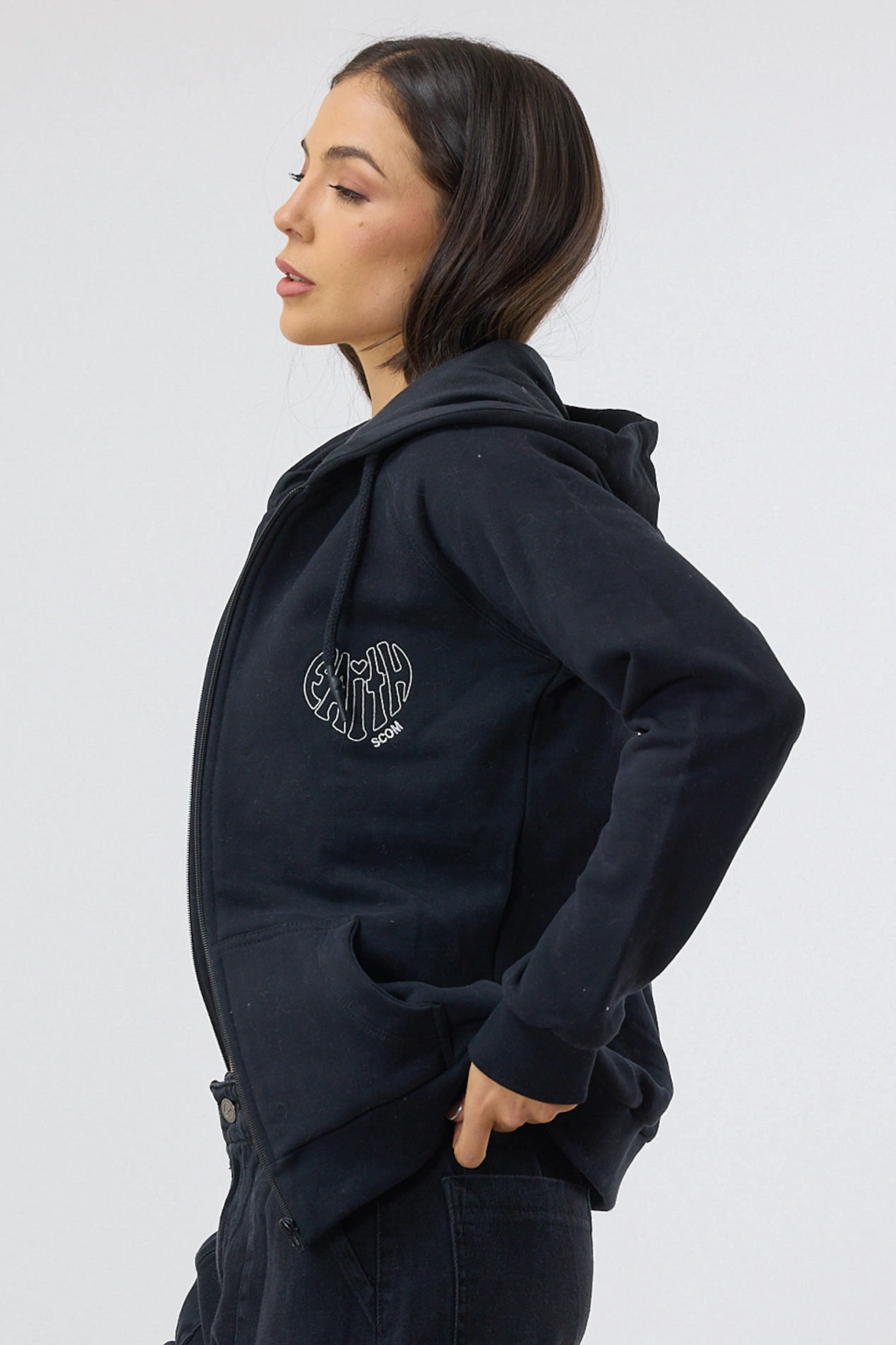 Campera hoodie de algodón con frisa, capucha y bolsillos. Tiene bordado.