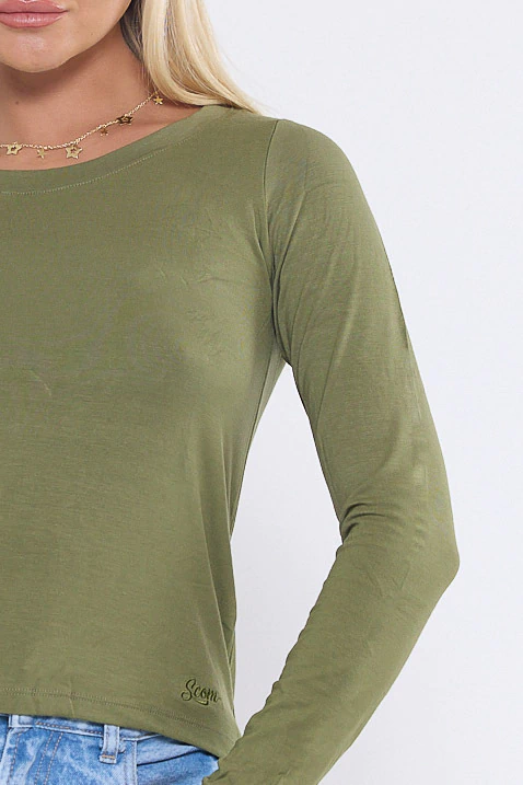 Remera basica manga larga de cuello redondo, largo hasta la cadera confeccionada en modal con lycra.