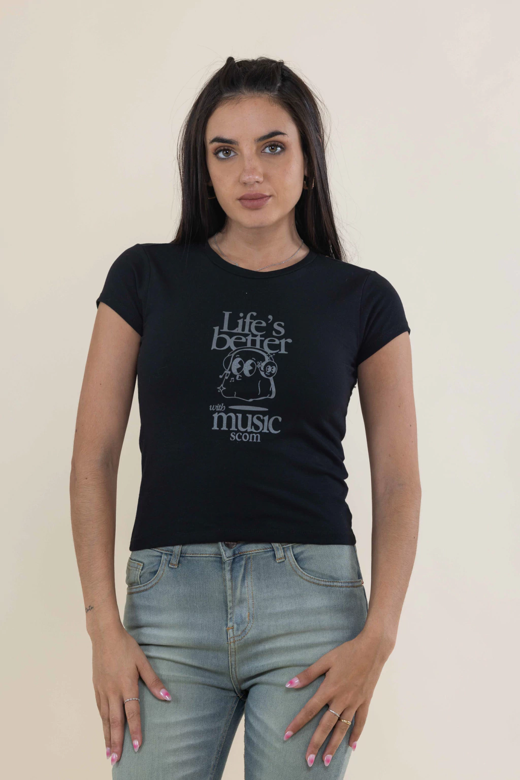 Remera de modal con lycra estilo babe tee con estampa frontal.